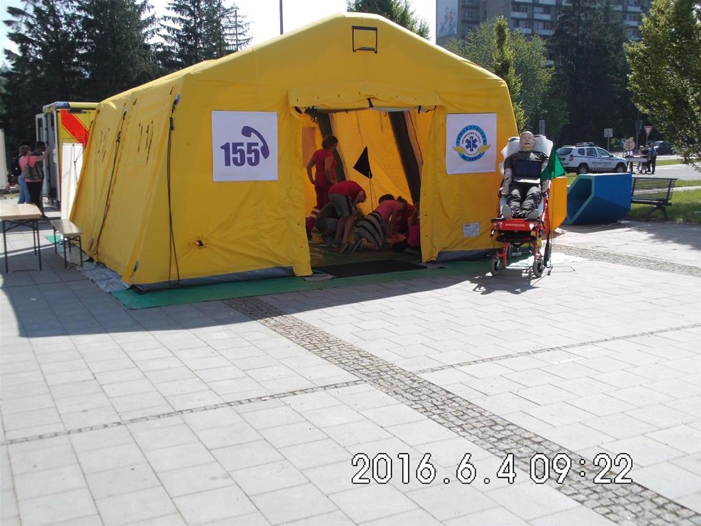 Ve stanu si pak návštěvníci mohli pod vedením profesionálních záchranářů nacvičovat správný postup při poskytování první pomoci. Prohlédnout si bylo možno i speciální resuscitační model, sofistikovanou figurínu, kterou při tréninku a školeních používají samotní záchranáři.