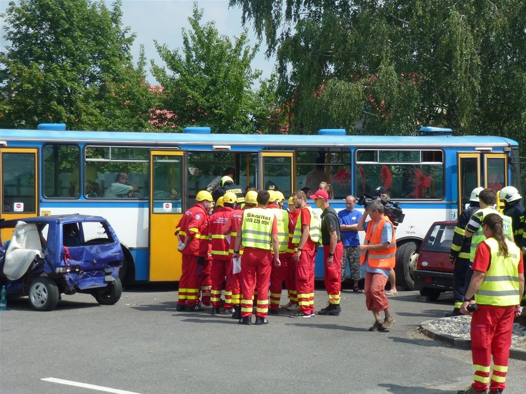 Pro potřeby výcviku zaměstnanců ZZS MSK se ve dvou dnech jednalo o simulaci dopravní nehody autobusu a třech osobních vozidel, které havarovaly na rychlostní komunikaci. Foto: ZZS MSK