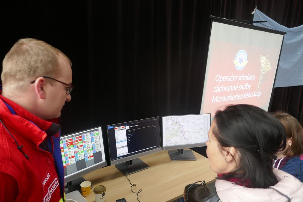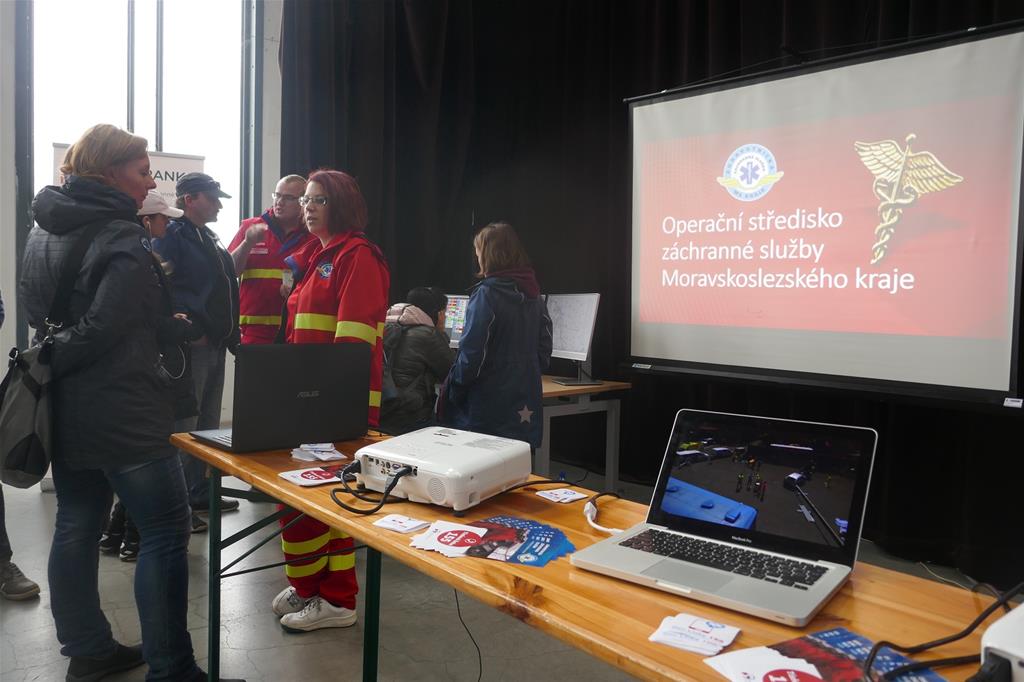Součástí expozice záchranné služby bylo rovněž simulované pracoviště operátorů. Návštěvníci na něm mohli vidět, jak dispečeři pracují, získat informace přítomných operátorů o úkolech, které plní a obtížné práci při přebírání tísňových volání, jejich vyhodnocování a řízení provozu všech třiašedesáti výjezdových týmů v Moravskoslezském kraji.