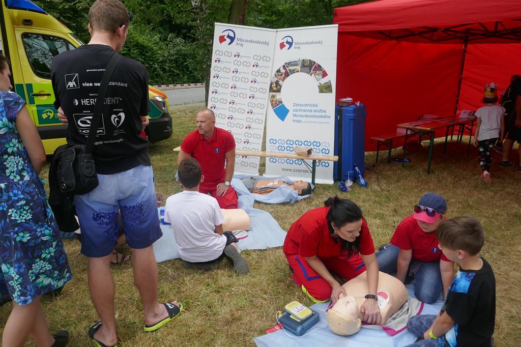 Za velmi živého zájmu návštěvníků probíhaly také komentované ukázkové resuscitace na nádvoří hradu. K vidění byl nejen zásah profesionální posádky ZZS, ale i pomoc poskytnutá vyškoleným dobrovolným zachráncem (first responderem). Systém dobrovolníků funguje v Moravskoslezském kraji od dubna letošního roku a návštěvnici Dne policie mohli sledovat způsob a princip jejich zapojení při záchraně pacienta.