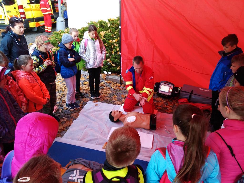Záchranáři na svých stanovištích v rámci projektového dne přivítali 750 dětí, které přicházely v organizovaných skupinkách. Během dopoledne předvedli čtyřikrát komentovanou ukázku záchrany u pacienta s náhlým selháním krevního oběhu.
