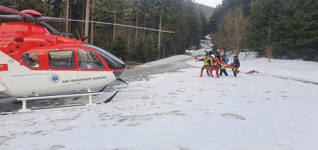 Posádka vrtulníku rozhodla o evakuaci pacienta z nepřístupného terénu pomocí jeřábu za spolupráce s HS, která k jednadvacetiletému muži vyjela po zemi. Pacient byl lokalizován na místě zvaném Větry. Mezipřistání provedli letečtí záchranáři na Lukšinci, odkud přiletěli zpět k místu zásahu. Lékař byl za pomoci jeřábu dopraven k pacientovi. Za vzorné spolupráce s horskou službou následně proběhlo jeho základní vyšetření a ošetření, zajištění tepelného komfortu pomocí termo fólie. Poté byl pacient evakuován v transportní síti zpět na místo mezipřistání, převzat na palubu vrtulníku a transportován do frýdecko-místecké nemocnice. Předán byl do péče týmu tamního urgentního příjmu.