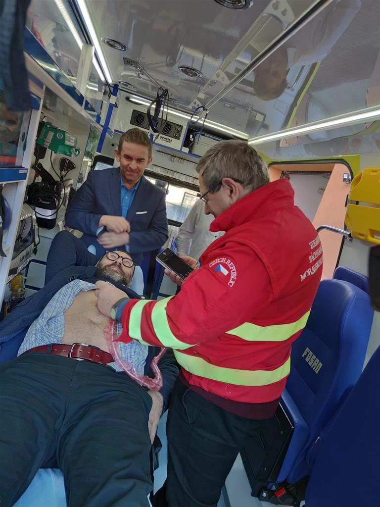 Nový přístroj předal na výjezdové základně řediteli územního odboru zdravotnické záchranné služby primátor města Frýdek-Místek, Petr Korč, a to v doprovodu dalších představitelů magistrátu.
