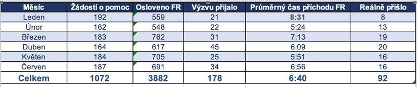 Tab.: Počet zásahů FR v 1. pol. 2022