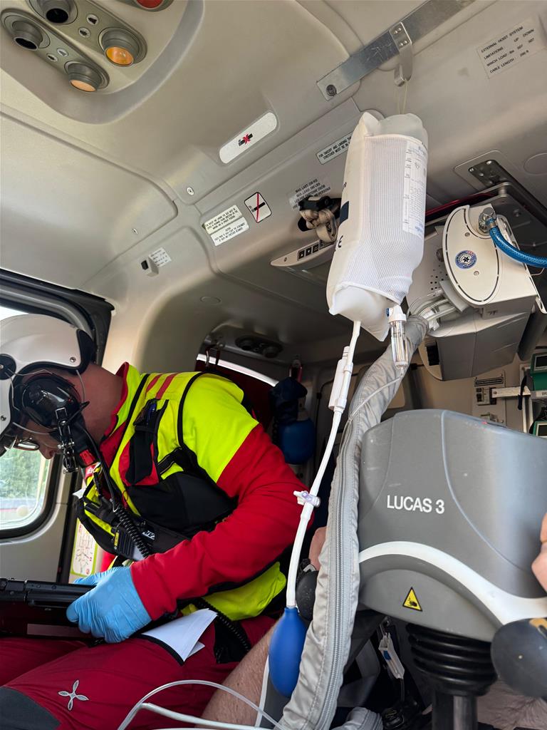 K imobilizaci záchranáři použili fixační krční límec, pánevní pás a celotělovou podtlakovou matraci. Nitrožilně podanými léky zaléčili zraněnému bolest a zahájili infuzní terapii.