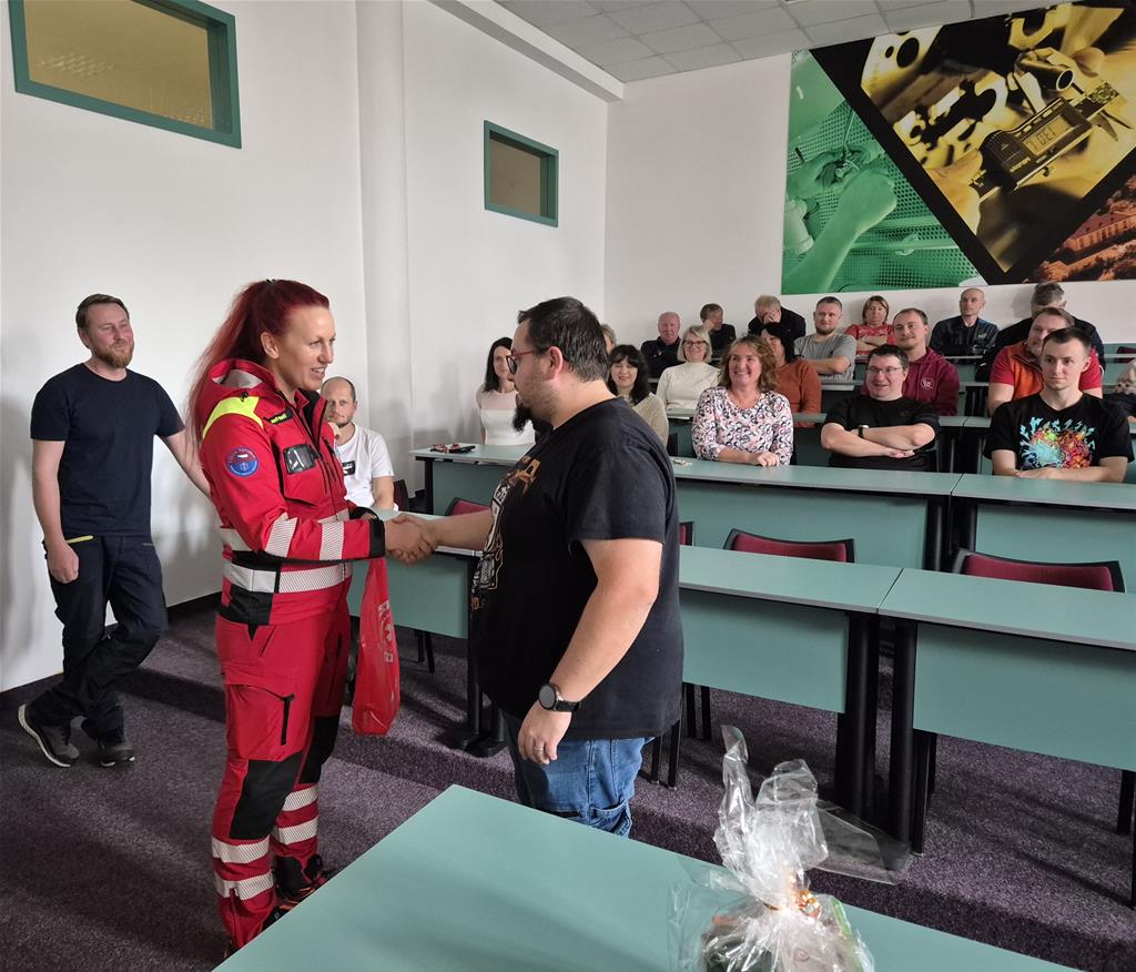 Ve středu, 22. října, proběhlo přátelské setkání učitelského sboru Střední průmyslové školy Třineckých železáren a zástupkyně Zdravotnické záchranné služby MSK. Oceněn byl na něm učitel, který díky včasně poskytnuté první pomoci zachránil spolu se svou ženou v polovině září život svému dědečkovi. Díky správnému postupu došlo dokonce k obnově funkčního srdečního rytmu ještě před příjezdem lékařské posádky na místo.
