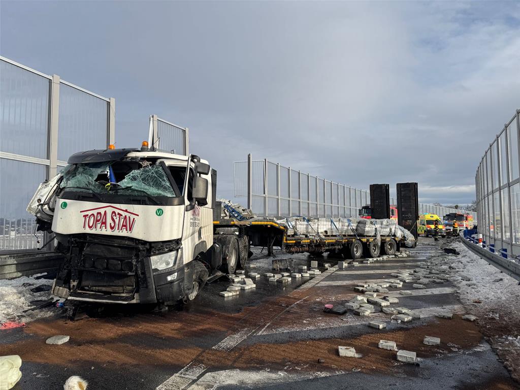 24.11.2025 Zásah záchranářů u nehody kamionu na dálnici D48