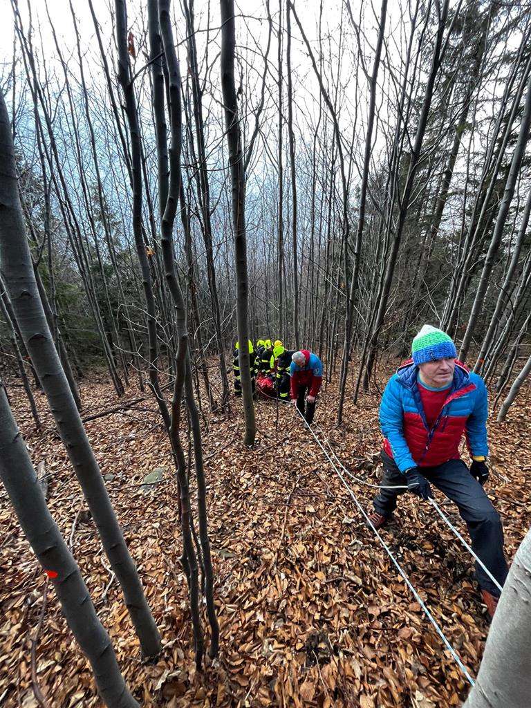 Pětačtyřicetiletý muž utrpěl úraz při prořezávání stromů. Jedním z kmenů byla zasažena jeho dolní končetina. Místo události se přitom nalézalo ve svažitém terénu, přibližně 400 metrů od lesní cesty. Záchranáři provedli ošetření zraněné holeně. Zajistili tepelný komfort pacienta, žilní vstup, zahájili podávání léků tlumících bolest a uložení do podtlakové matrace. Poté byl zahájen komplikovaný přesun k sanitnímu vozidlu za vydatné technické pomoci členů horské služby a hasičů. Muže poté záchranáři transportovali na úrazovou ambulanci nemocnice Frýdek-Místek.