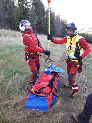 Zásah je ze září 2019. Letečtí záchranáři zasahovali u zraněné ženy s poraněním dolní končetiny. K úrazu došlo ve strmém a obtížně přístupném terénu, nevhodném pro zásah pozemní technikou. Posádka vrtulníku proto využila svou specializaci pro práci v nepřístupném terénu a k transportu pacientky využila podvěs se třiceti metrovým lanem.