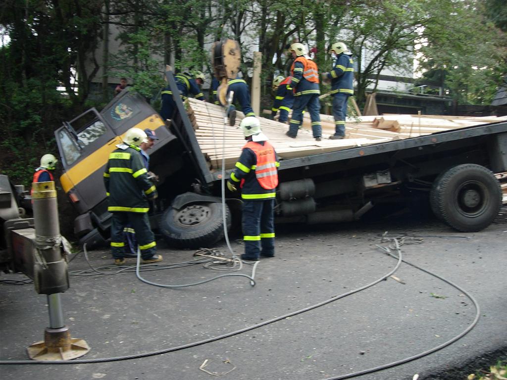 Posádky záchranné služby někdy zasahují u komplikovaných a ne zcela obvyklých situací, jejichž zvládnutí vyžaduje perfektní spolupráci s dalšími složkami Integrovaného záchranného systému. V tomto případě se jednalo o nehodu nákladního vozu, plně naloženého dřevem. Jeho řidič zůstal po havárii zaklíněn pod kabinou automobilu. Vyproštění bylo náročné a trvalo celou hodinu. Ač se to zdá z fotografií neuvěřitelné, muž byl nejen naživu, ale po celou dobu vyprošťování při vědomí a se záchranáři komunikoval. Jeho zranění ovšem byla mnohočetná a těžká.
