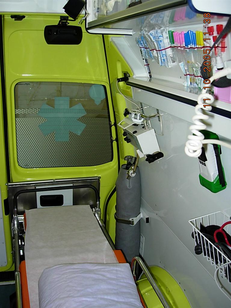 Ambulantní prostor našich sanitních vozů je uzpůsoben nejen pro bezpečný a pohodlný transport pacientů, jako je například odpružená konstrukce, na níž jsou umístěna nosítka. Vnitřní uspořádání a zástavba umožňuje v případě potřeby provádět ošetřovatelské či léčebné výkony i za jízdy vozidla.